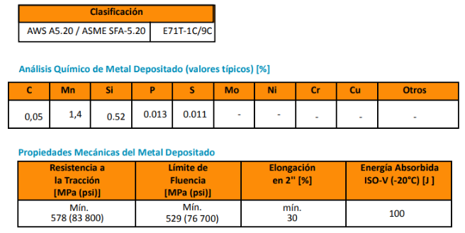 El alambre foxtter 71T1 es un alambre tubular para aplicarse en toda posición, diseñado para trabajar con CO2 como gas protector. En comparación con alambres tubulares autoprotegidos genera un menor nivel de humos y brinda buenas propiedades frente a la resistencia al impacto a bajas temperaturas. El cordón de soldadura presenta una buena apariencia y la remoción de escoria es fácil.