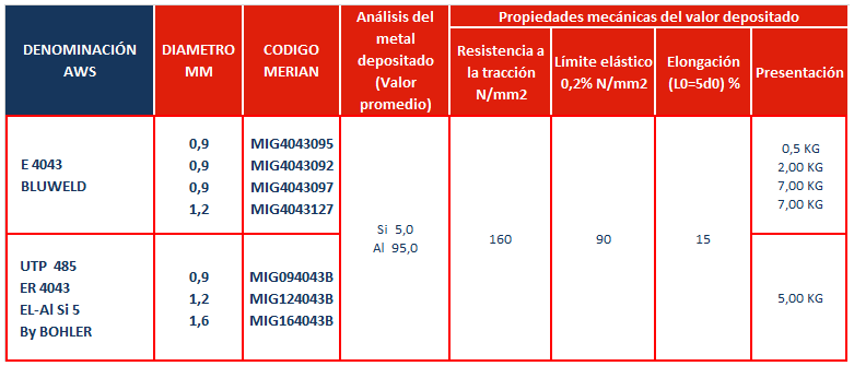 Alambre de aluminio con 5 % de silicio, para soldar o revestir aluminio y sus aleaciones.