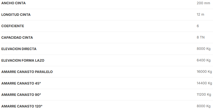Gran Flexibilidad y excelente relación peso de la eslinga con la capacidad máxima de uso. Esto brinda gran comodidad en el manipuleo de la eslinga.