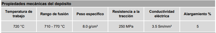 Metal de aporte con alta capilaridad y muy buena fluencia, apto para unir por brazing cobre y aleaciones de cobre para trabajos desde -20 °C hasta 150 °C; no se use en ambientes sulfurosos, Fe y aleaciones de Níquel