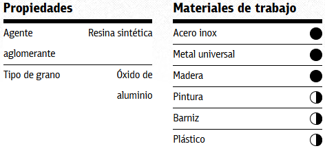 - El modelo está disponible con los grados de finura grueso, muy fino, fino y medio. Las versiones finas son muy apropiadas para el acabado final y el alisado. Los granos más gruesos permiten, por ejemplo, efectuar el lijado inicial de superficies a pintar o limpiar el material.