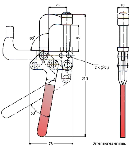 - Material: Acero SAE 1010 – Brazo: Acero Forjado SAE 1045