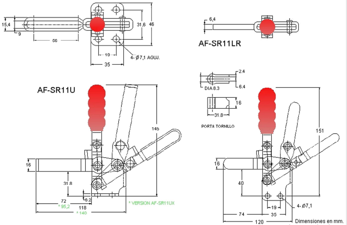 - Modelos con brazo L provistos con porta tornillo