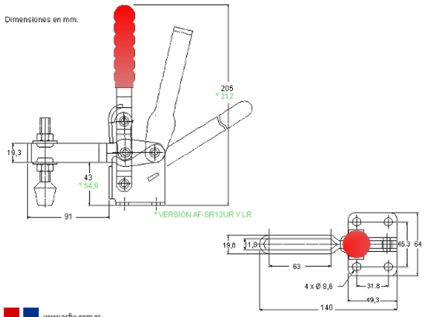 - Todos los modelos provistos con prisionero vulcanizado de neoprene PRV3/8X89