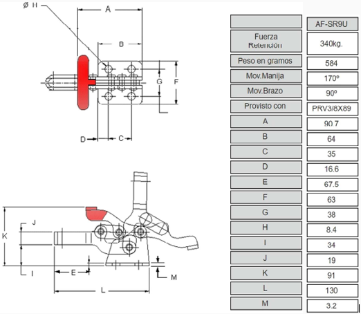 - Fuerza de retención AF-SR5UINOX: 85 Kgs