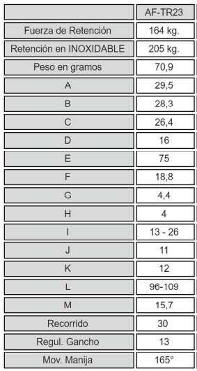 - Fuerza de retención: 164/1125kg.