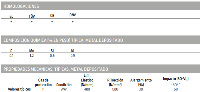 Varilla para la soldadura TIG de aceros de grano fino y débilmente aleados al níquel.