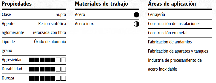 - En este ámbito es donde el disco de corte de la clase de rendimiento Supra consigue los mejores resultados. El producto ofrece una agresividad muy alta, convence por su excelente durabilidad y ofrece características óptimas con respecto a la dureza.